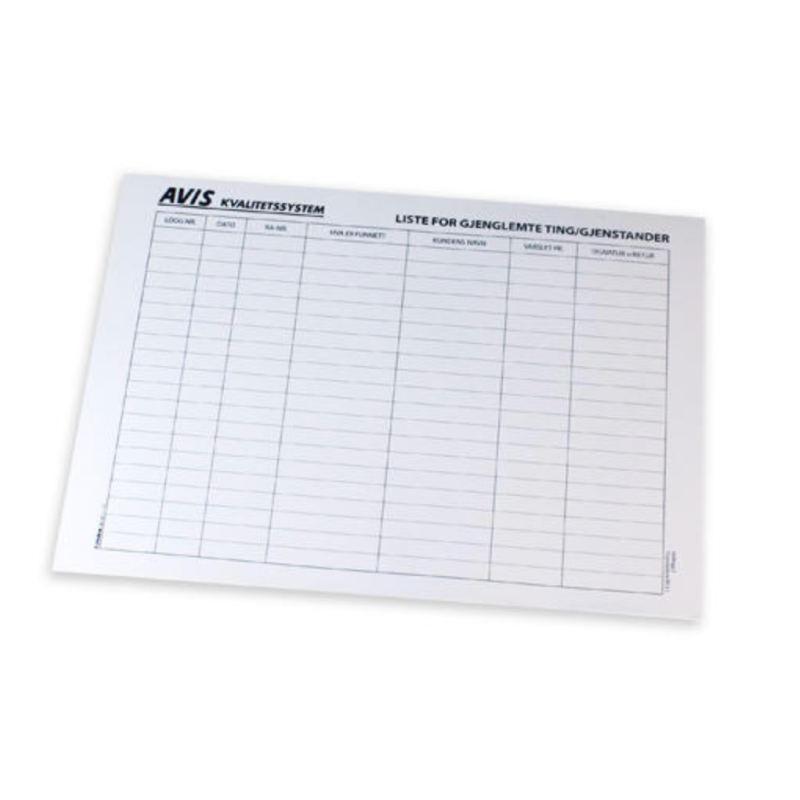 Liste for gjenglemte ting, blokk - 50 stk antall